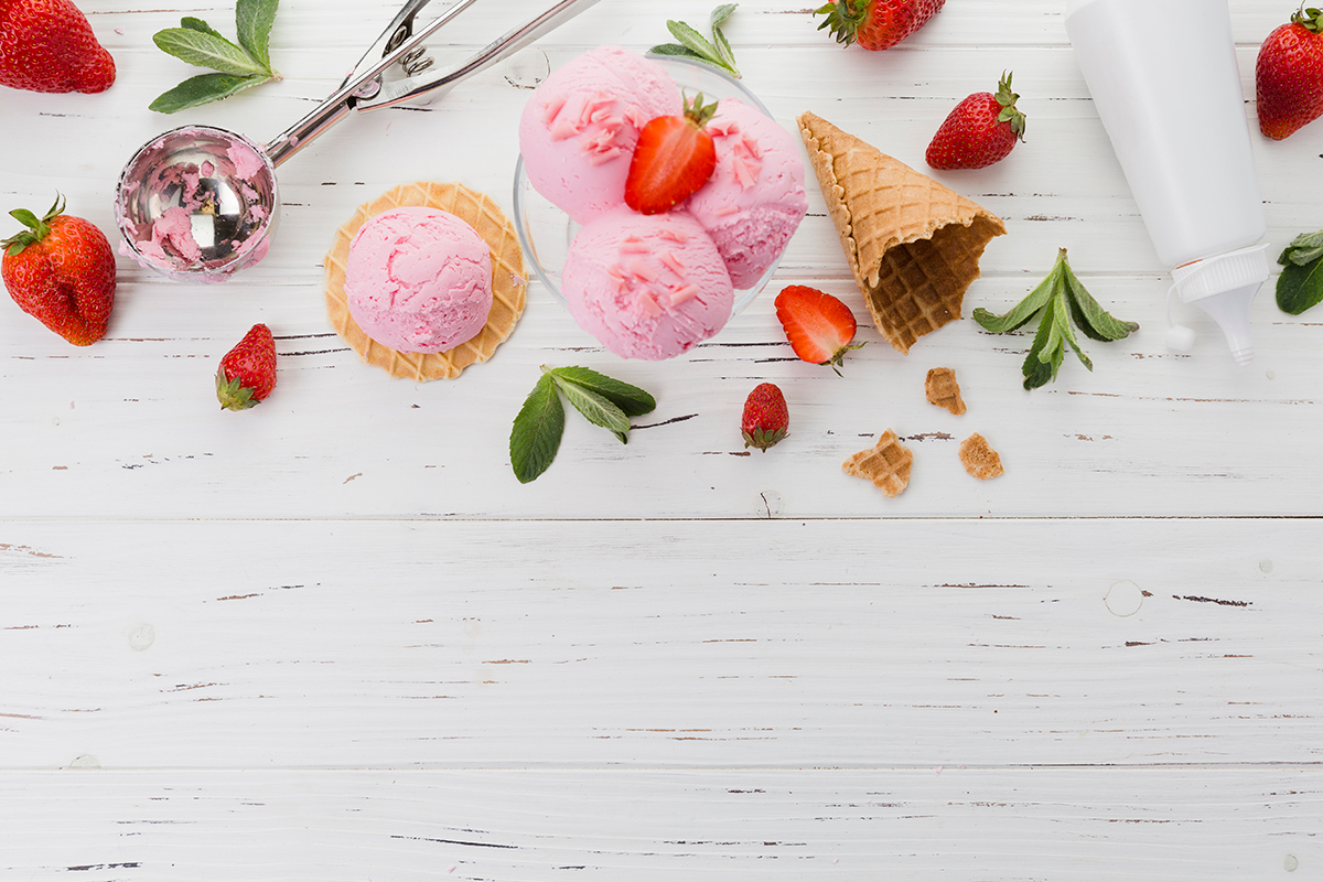 Helados cremosos: Estos helados suelen ser los de más éxito por su textura. Para conseguir esta textura, utilizaremos como base del helado yogurt o leche animal, queso batido, leche o yogur vegetal. A eso le añadiremos la fruta deseada y como toque final podemos añadirle toppings como frutos secos o semillas.