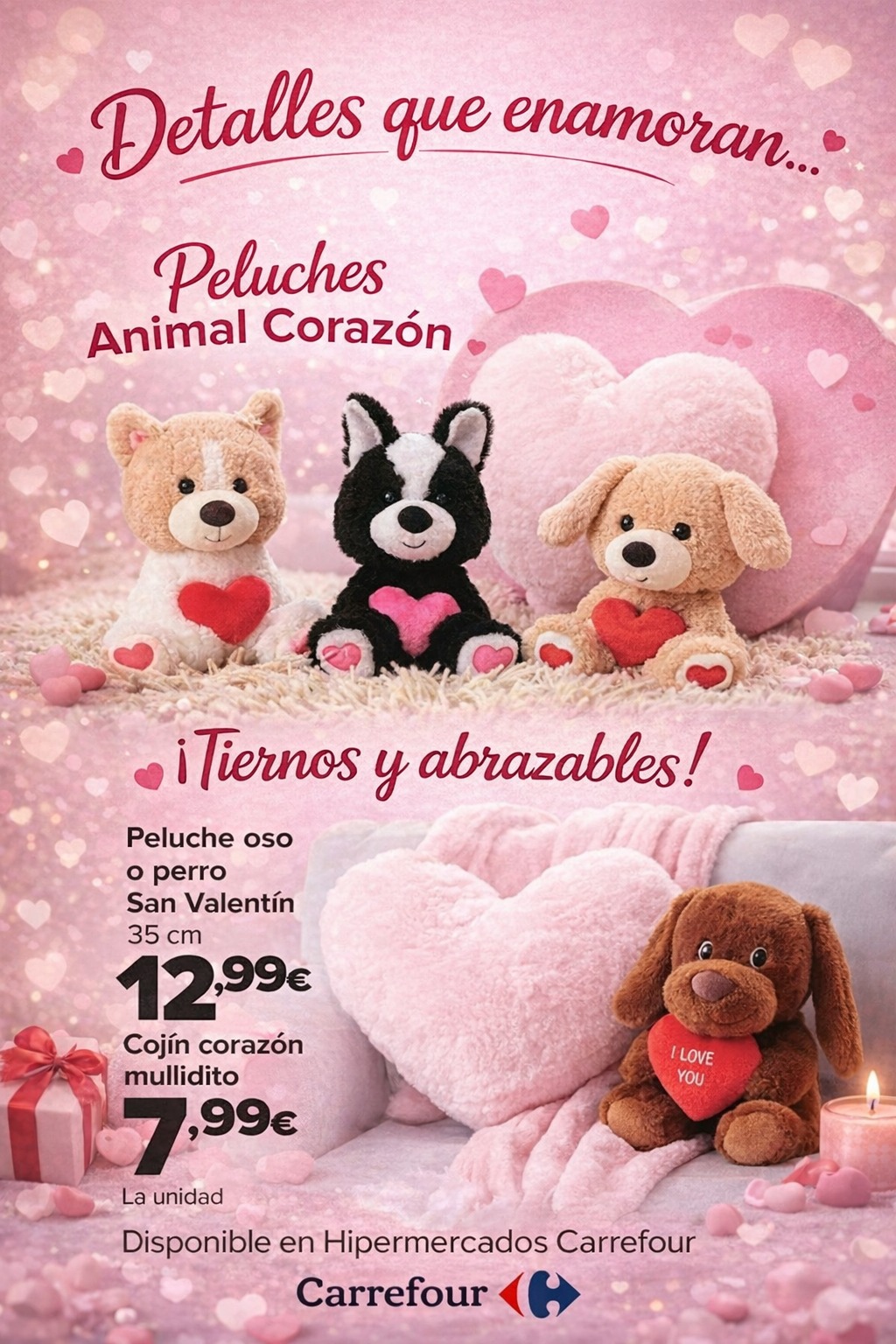 Si buscas un detalle que derrita corazones, pásate por nuestro Hipermercado Carrefour y encuentra el regalo perfecto: peluches, cojines súper mulliditos y mil ideas para sorprender.
